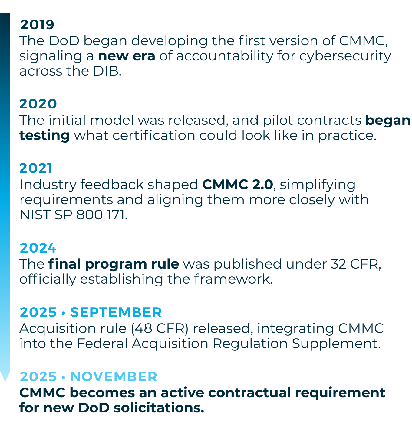 CMMC has been a long time coming. For years, it existed as a concept built on good intentions and early pilot programs, but 2025 marks the moment it becomes real. The framework that once lived on paper is now written into the contracts that drive our national defense.